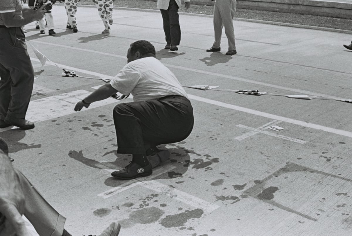 Dave Friedman captured racing history through his photography and his collection of works by other photographers. This digital image is one of over 1600 images documenting the 1964 Indianapolis 500. A.J. Foyt earned his second Indy 500 victory that year, but the 1964 race is also remembered for the accident that took the lives of drivers Eddie Sachs and Dave MacDonald.