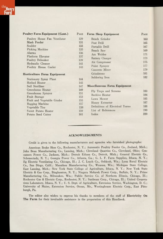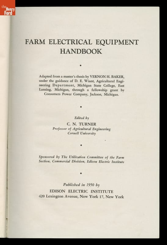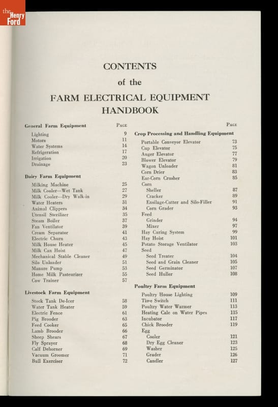 The electrification of rural areas transformed work on the farm. Farmers were familiar with human, animal and mechanical power, but electrically powered equipment was completely new to them. This book, cooperatively produced between the Agricultural Engineering Department at Michigan State College (now MSU) and several electric companies, describes how to use electrically powered equipment in all areas of the farm.