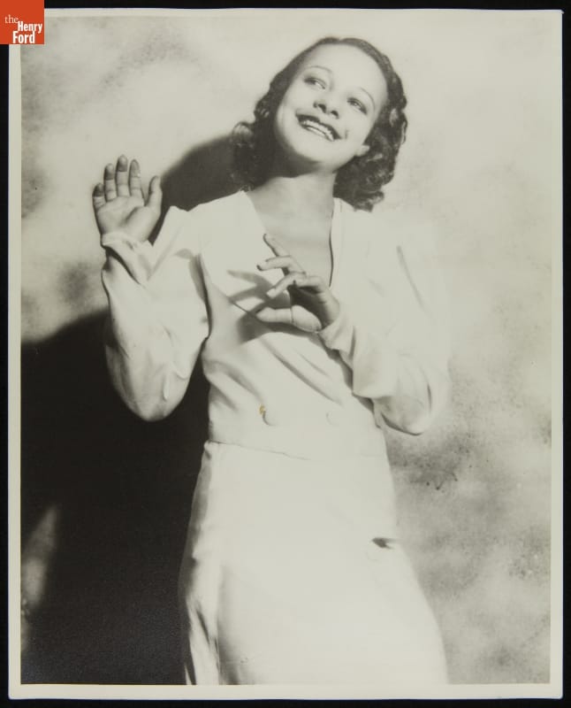 Paradise Valley, the entertainment district of Detroit’s Black Bottom neighborhood, contained numerous clubs, cabarets, and theaters. Many famous Black performers, such as Duke Ellington and Ella Fitzgerald, played in Paradise Valley from the 1920s to the 1950s. This photo shows an unidentified artist who played at Club Harlem, a short-lived “black-and-tan” establishment that catered to Black and White audiences.