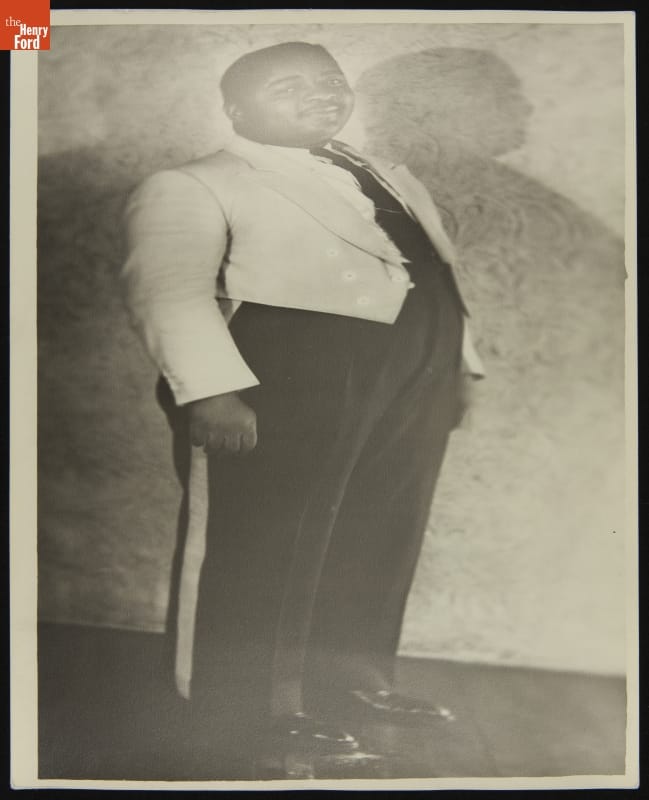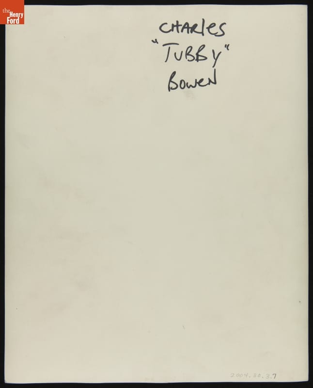 This publicity photo of Charles "Tubby" Bowen (1911-1978) is from Club Harlem in Detroit, Michigan, circa 1935. Bowen was a local tenor saxophonist. He played in several bands in Detroit and was briefly a member of Count Basie's band. After a decade-long career as a journeyman musician, Bowen led his own band -- Tubby Bowen and his Tubs -- beginning in 1941.