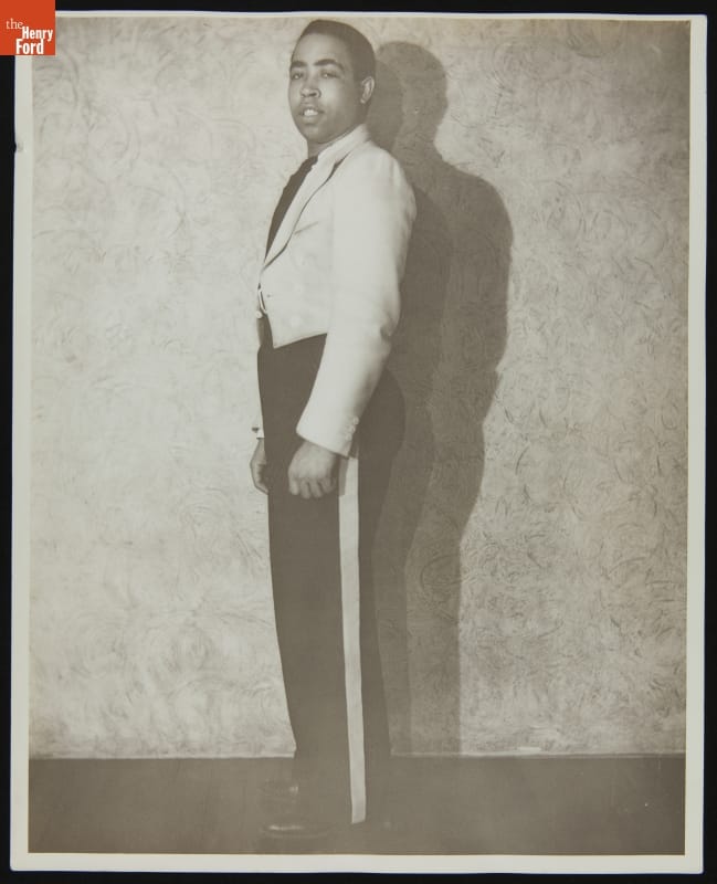 Paradise Valley, the entertainment district of Detroit’s Black Bottom neighborhood, contained numerous clubs, cabarets, and theaters. Many famous Black performers, such as Duke Ellington and Ella Fitzgerald, played in Paradise Valley from the 1920s to the 1950s. This photo shows an unidentified artist who played at Club Harlem, a short-lived “black-and-tan” establishment that catered to Black and White audiences.