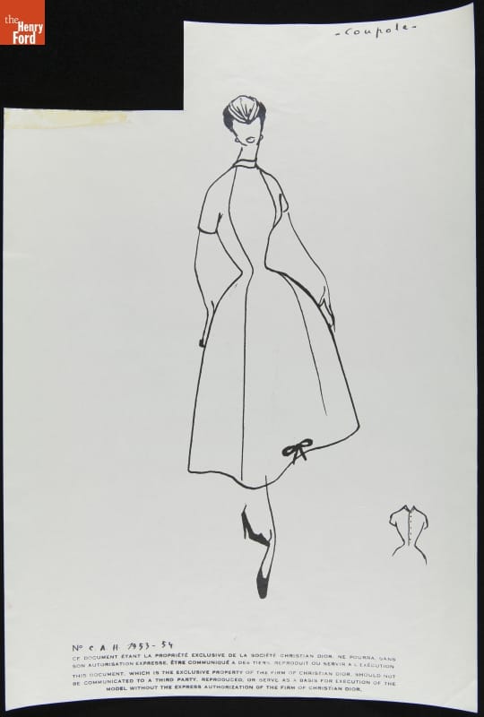 Christian Dior Fashion Design Drawing, "Coupole," 1953-1954