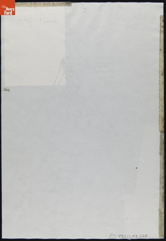 Fashion houses provided sketches to clients interested in purchasing garments from the designer's line of couture clothing. These sketches contained an image of a gown, dress or other apparel, illustrating the designer's stylistic vision. Fabric samples were usually included. Clients could then decide which design to purchase and suggest personal changes. This sketch was sent to Elizabeth Parke Firestone, wife of tire magnate Harvey S. Firestone, Jr.