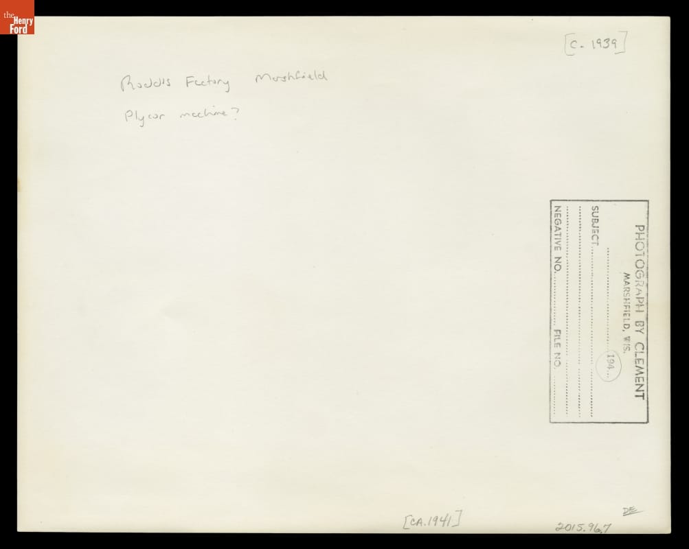 Plycor Machine at the Roddis Factory, Marshfield, Wisconsin, circa 1941