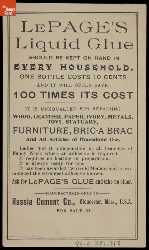 Trade Card for LePage's Glue, Russia Cement Co., 1883-1890