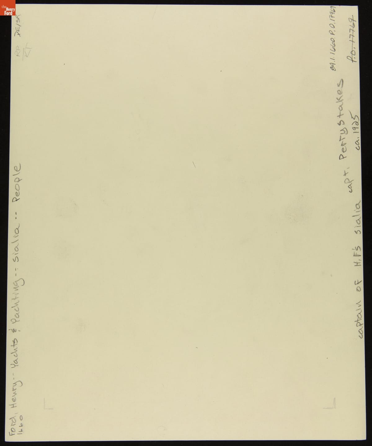 Perry Stakes, Captain of Henry Ford's Personal Yacht "Sialia," circa 1925