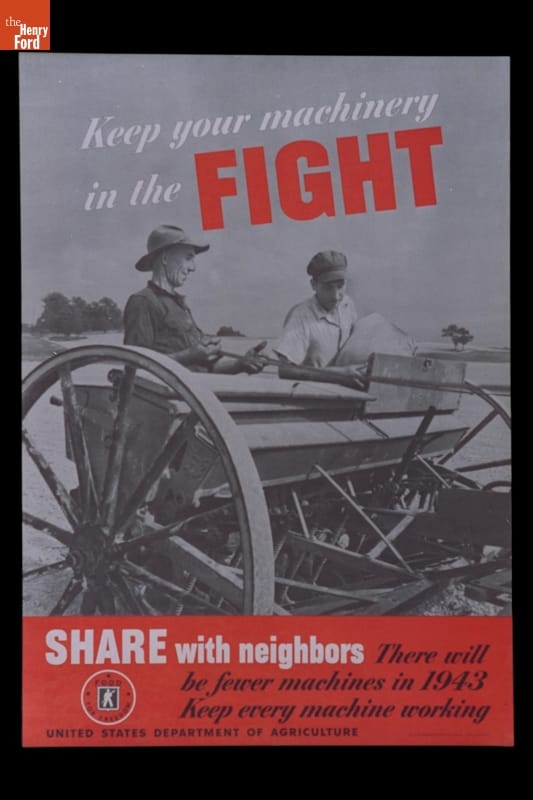 World War II Poster, "Keep Your Machinery in the Fight, Share with Neighbors," 1943