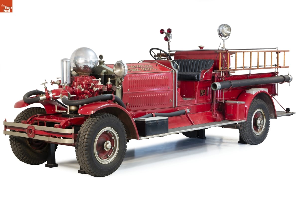 Pumper trucks from the Ahrens-Fox Fire Engine Company of Cincinnati, Ohio, were distinguished by front-mounted pumps topped with large chrome balls. Air in that ball-shaped chamber smoothed out the pulses of water delivered by the piston pump. The ball also led to an unusual complaint from some drivers: excessive glare from sunlight glinting off the shiny sphere.