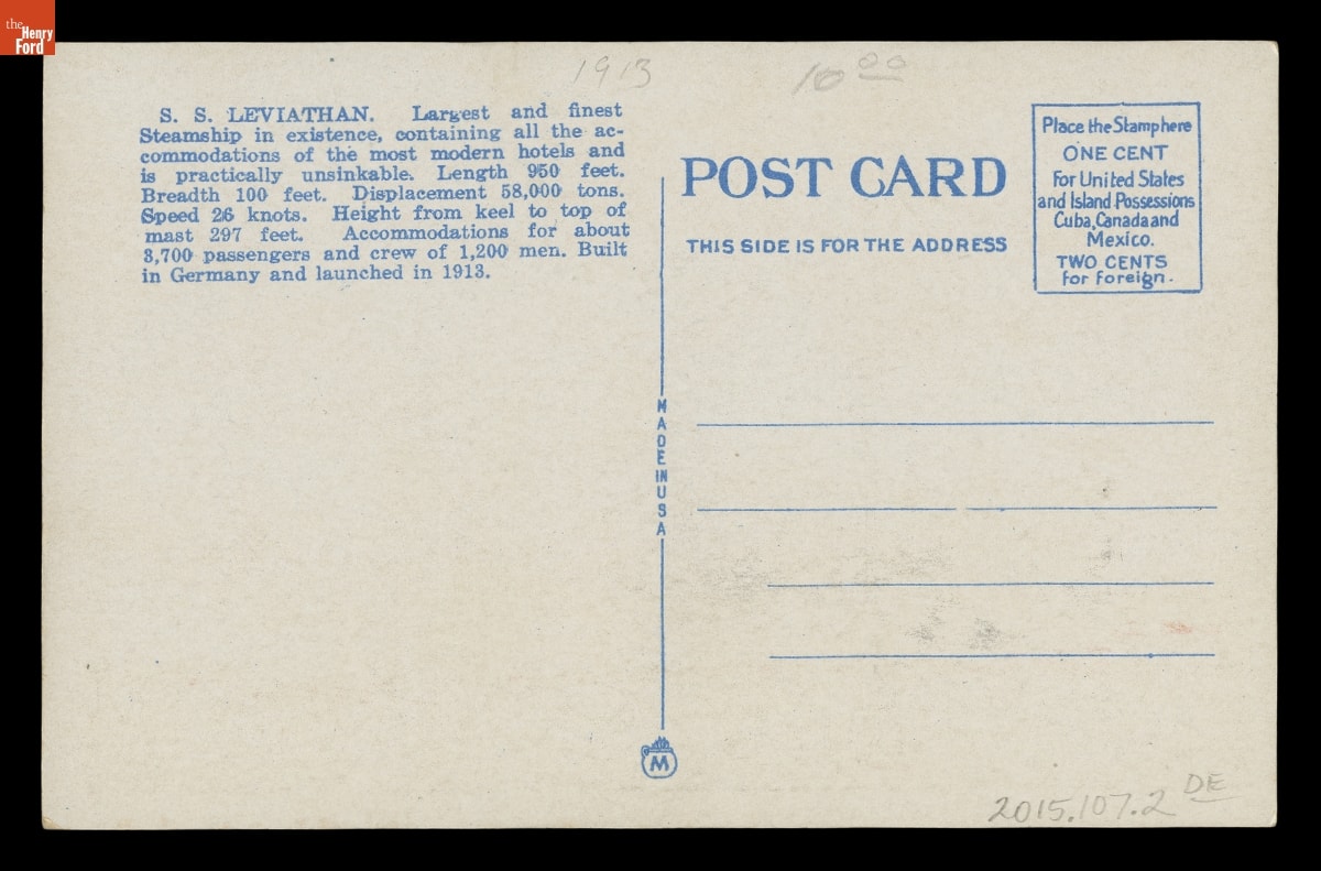 Postcard, "SS Leviathan," circa 1926