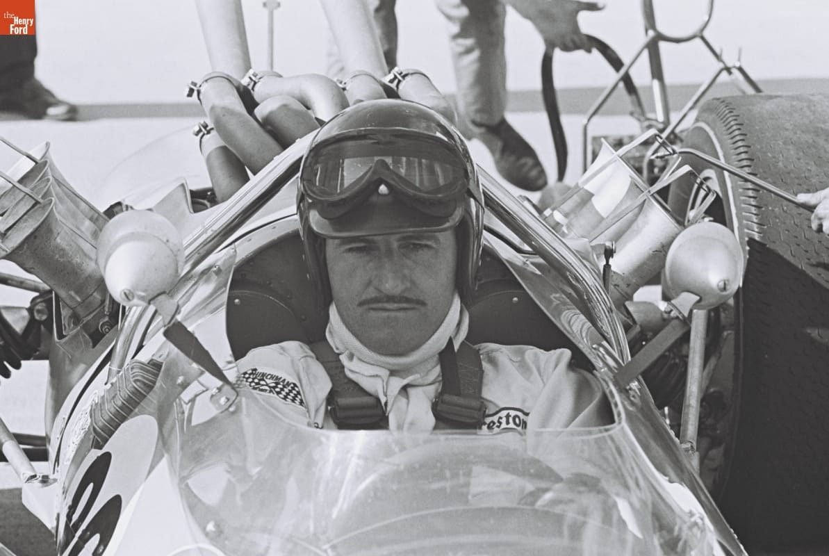 Photographer Dave Friedman captured and preserved auto racing history. His work -- and his collection of works by other photographers -- documents key races, cars, drivers, and teams. This photo shows British racer Graham Hill at Indianapolis Motor Speedway for events surrounding the 1967 Indianapolis 500. Hill won the previous year's race, but a bad piston ended his 1967 attempt after 23 laps.