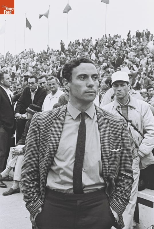 Jim Clark was photographed at Indianapolis Motor Speedway during practice sessions and qualifying trials leading up to the 1967 Indianapolis 500. He drove the #31 Ford-powered Lotus 38, entered by Colin Chapman's Team Lotus of Great Britain. When Clark's engine blew on lap 35, he was forced to retire early and settle for a 31st-place finish.