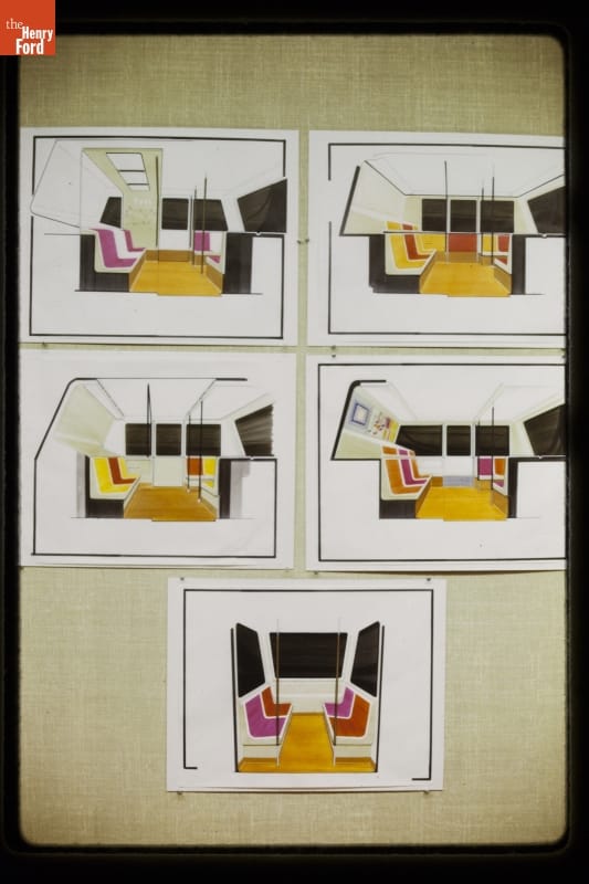 Renderings of Morgantown, West Virginia, People Mover Vehicle Interiors, circa 1971