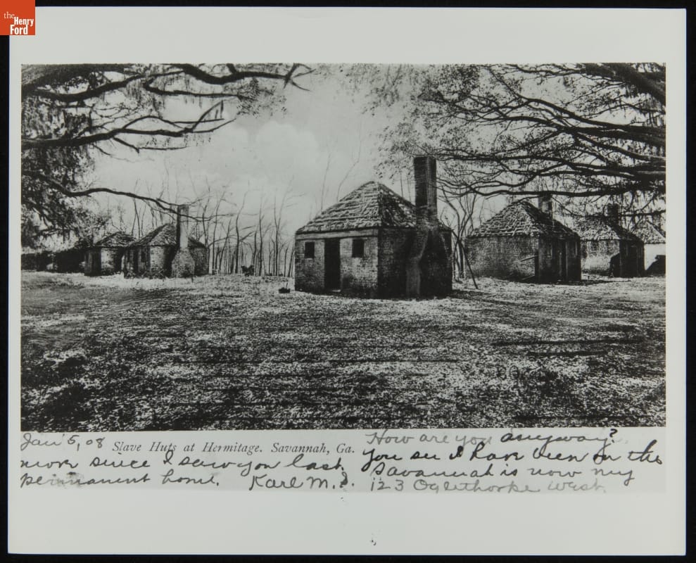 "Slave Huts at Hermitage, Savannah, Ga.," Postmarked January 5, 1908