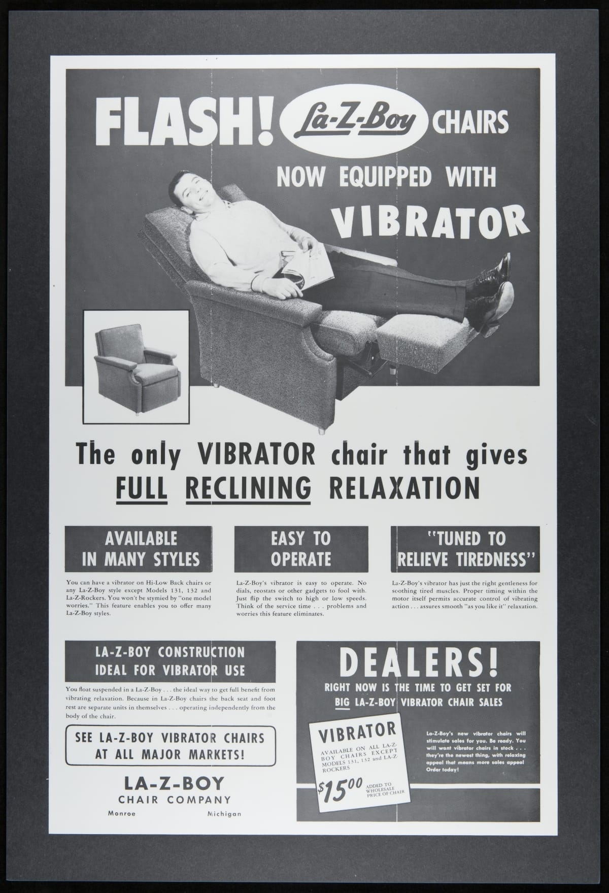 La-Z-Boy Advertising Poster for "Chairs Now Equipped with Vibrator," circa 1958