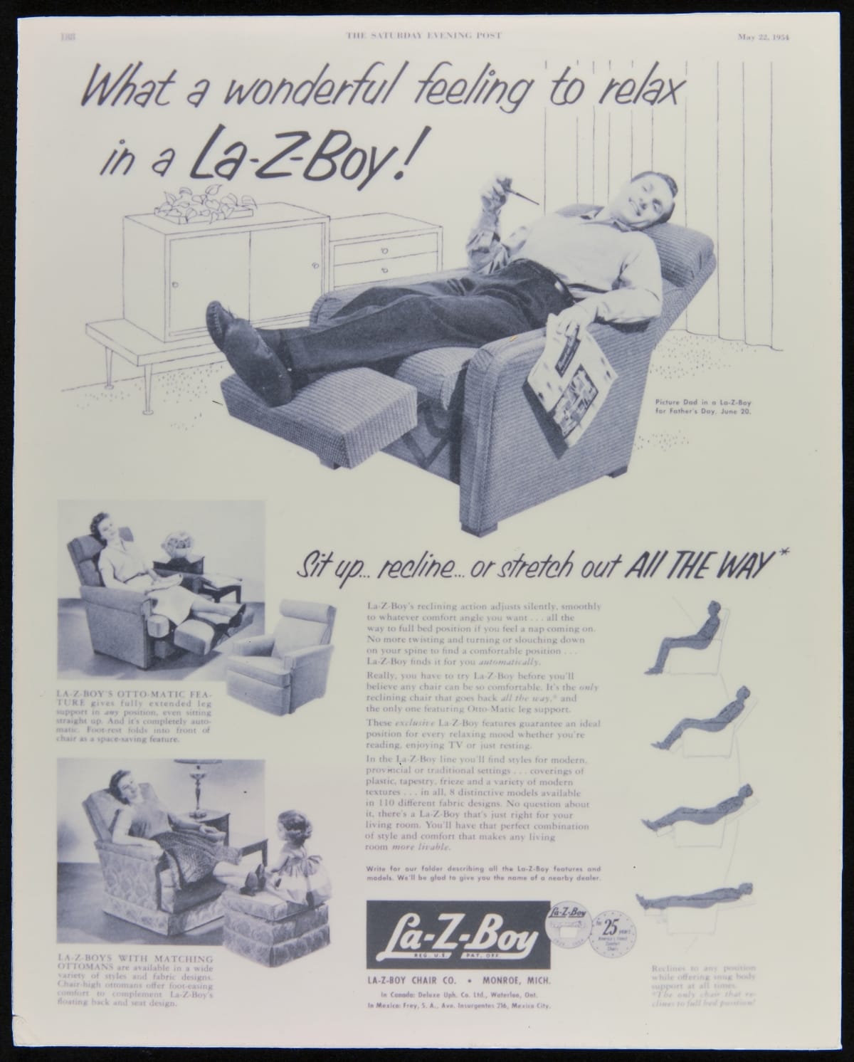 La-Z-Boy Advertisement, "What a Wonderful Feeling to Relax in a La-Z-Boy," May 22, 1954
