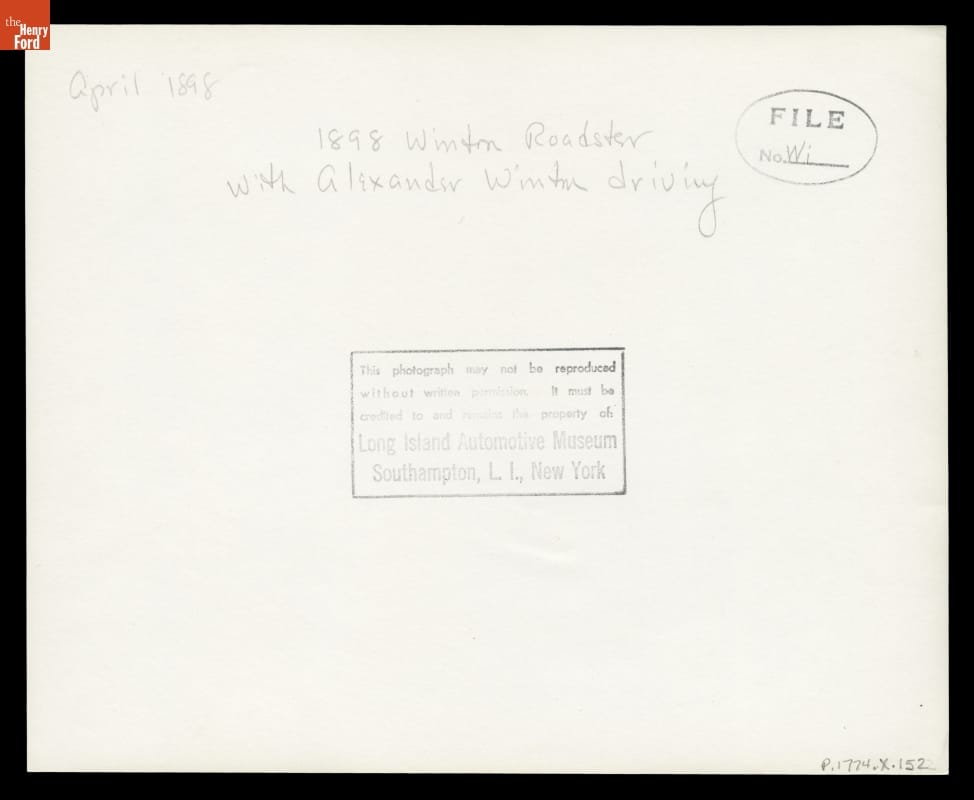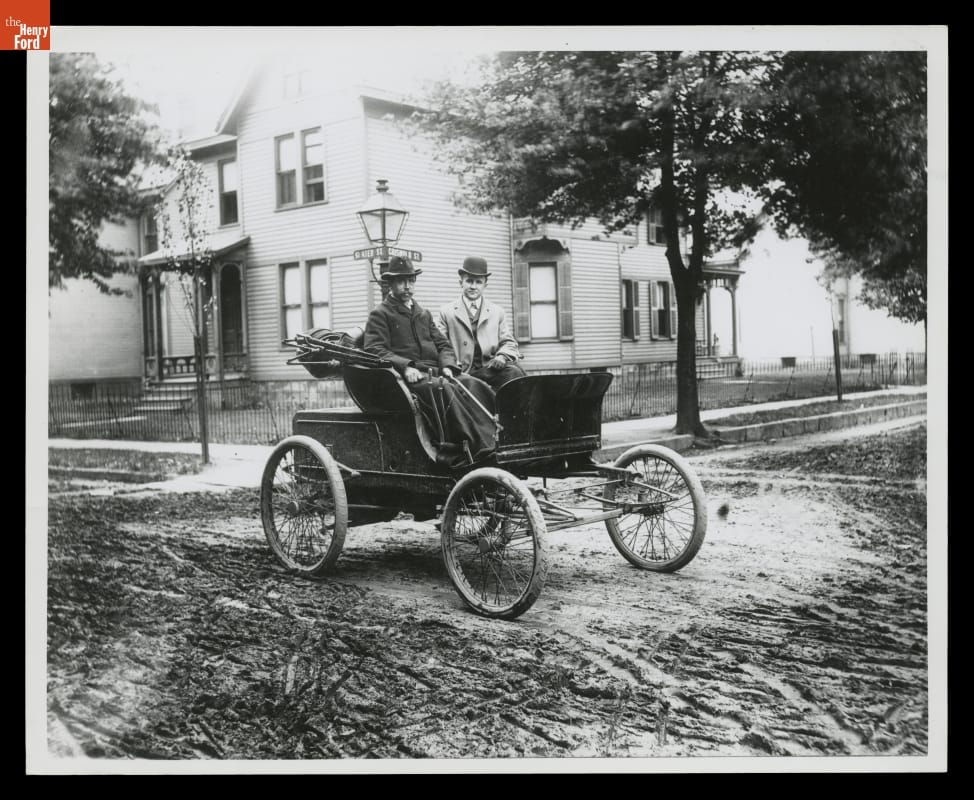 Alexander Winton and Mr. Shanks in an 1898 Winton Roadster