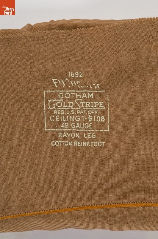 1692/ [illegible]/ GOTHAM/ GOLD STRIPE/ REG. U.S. PAT. OFF./ CEILING T-$.08/ 48 GAUGE/ RAYON LEG/ COTTON REINF. FOOT