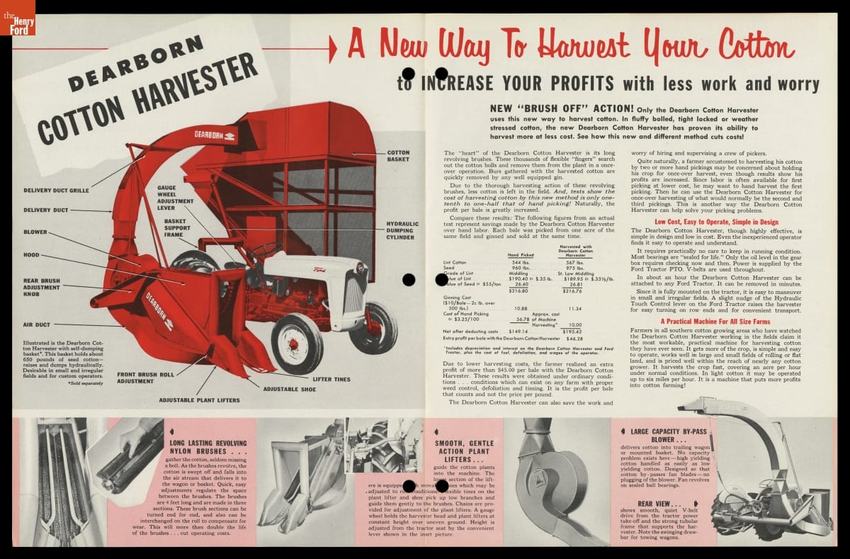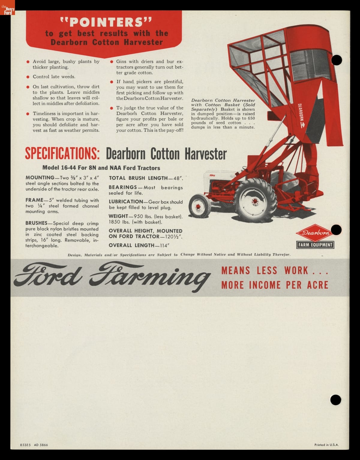 Brochure, "Dearborn Cotton Harvester for Use with Ford Tractor," 1953