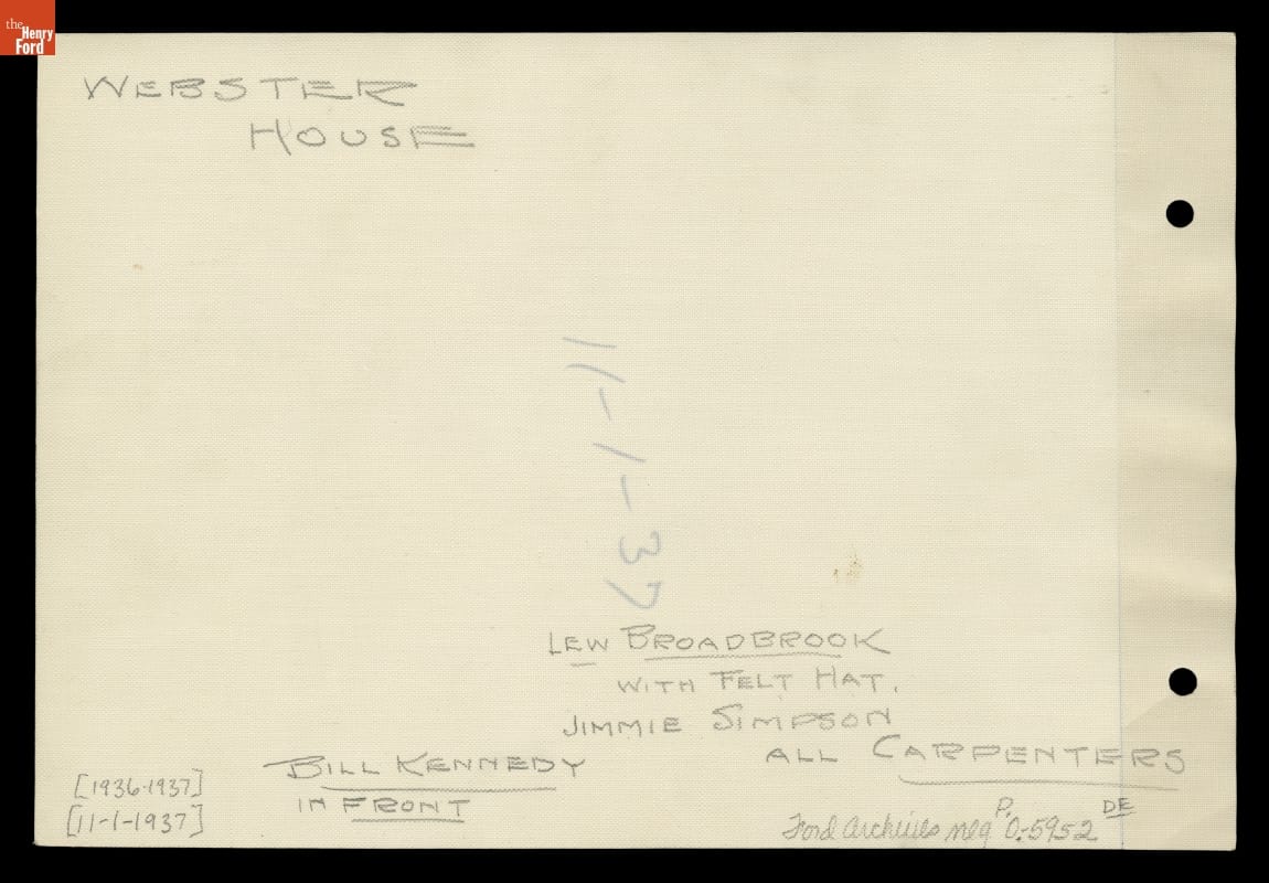 Noah Webster Home Construction in Greenfield Village, 1936-1937