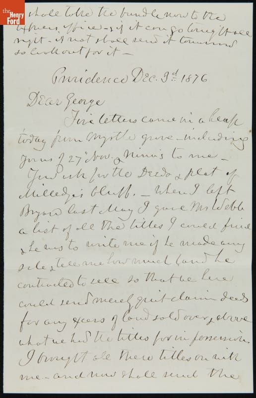 Letter from Samuel Arnold to George Appleton, December 3, 1876