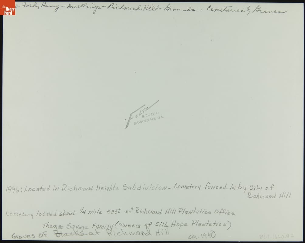 Henry Ford purchased vast amounts of land around present-day Richmond Hill, Georgia, beginning in the 1920s. Ford eventually acquired 85,000 acres -- and even built a winter residence. Located in the area is this historic cemetery. A pre-Civil War Presbyterian Church that served the local plantation community stood nearby, but it burned in 1882. The unfortunate event gave the cemetery its name.