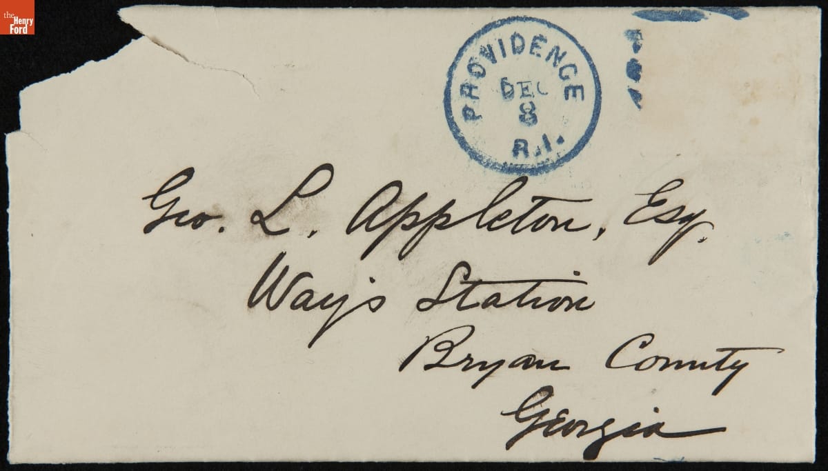 Envelope Sent from William Talbot to George L. Appleton, December 8, 1877