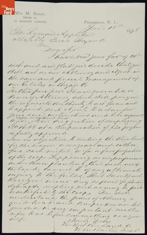 Letter from William Bailey to George Appleton, January 18, 1878