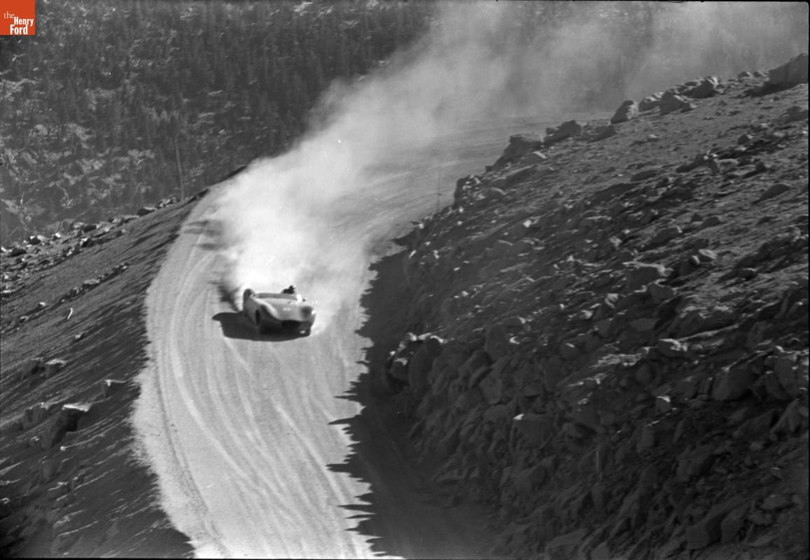 Dave Friedman has captured and preserved auto racing history through his own photography and his collection of works by other photographers. This image by Jack Brady Associates was taken during the 1960 Pikes Peak International Hill Climb. Drivers competed in open-wheel, stock and sports car classes as they raced against time to climb to the 14,115-foot mountain summit.