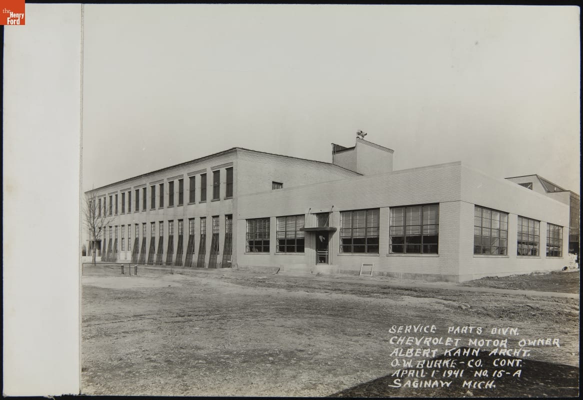 Construction is underway at Chevrolet's Service Parts Division plant in Saginaw, Michigan, in this 1941 photo. This new building was designed by Albert Kahn, among the most influential industrial architects of the early 20th century. Kahn's airy reinforced concrete structures were popular with automakers. He also counted Packard, Ford, Hudson, and Dodge Brothers among his clients.