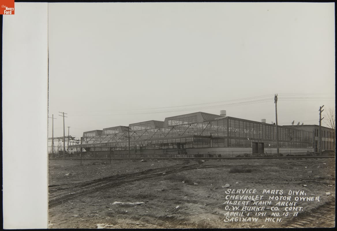 Construction is underway at Chevrolet's Service Parts Division plant in Saginaw, Michigan, in this 1941 photo. This new building was designed by Albert Kahn, among the most influential industrial architects of the early 20th century. Kahn's airy reinforced concrete structures were popular with automakers. He also counted Packard, Ford, Hudson, and Dodge Brothers among his clients.