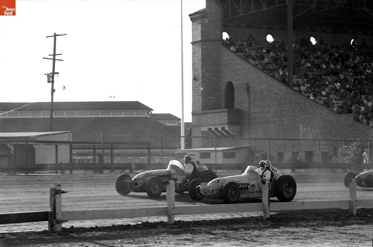 Dave Friedman has captured and preserved auto racing history through his photography. His work -- and his collection of works by other photographers -- documents key races, vehicles, drivers, and teams. In 1960, eighteen drivers sped around the one-mile dirt track at the Golden State 100. A.J. Foyt raced to victory on his way to capturing the United States Auto Club National Championship.