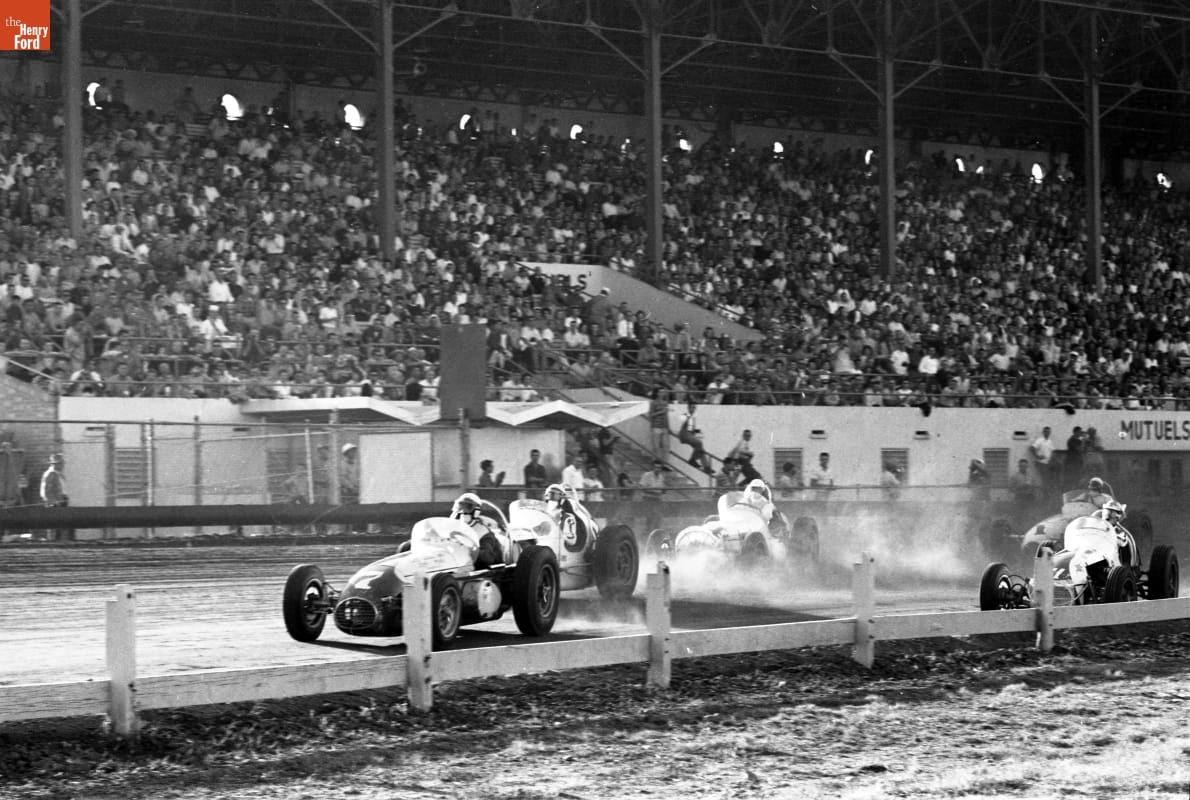 Dave Friedman has captured and preserved auto racing history through his photography. His work -- and his collection of works by other photographers -- documents key races, vehicles, drivers, and teams. In 1960, eighteen drivers sped around the one-mile dirt track at the Golden State 100. A.J. Foyt raced to victory on his way to capturing the United States Auto Club National Championship.