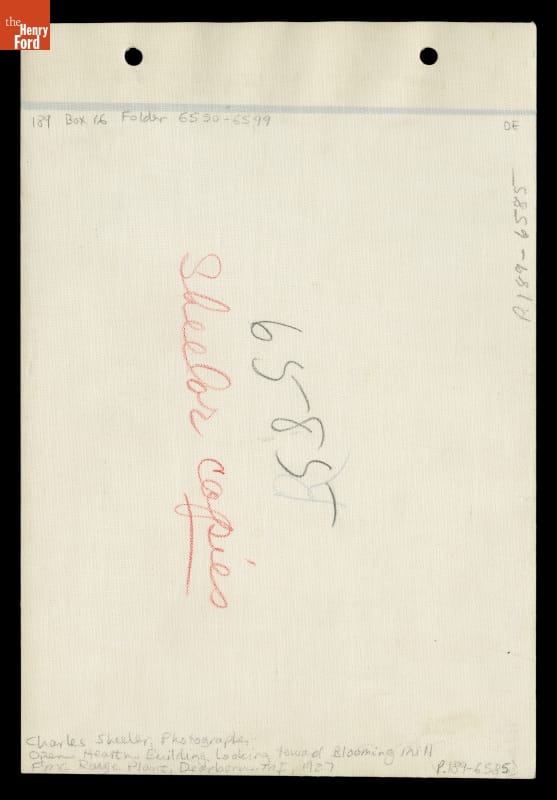 Originally photographed by Charles Sheeler in 1927 for Ford Motor Company. Copied by Ford Motor Company in 1929.