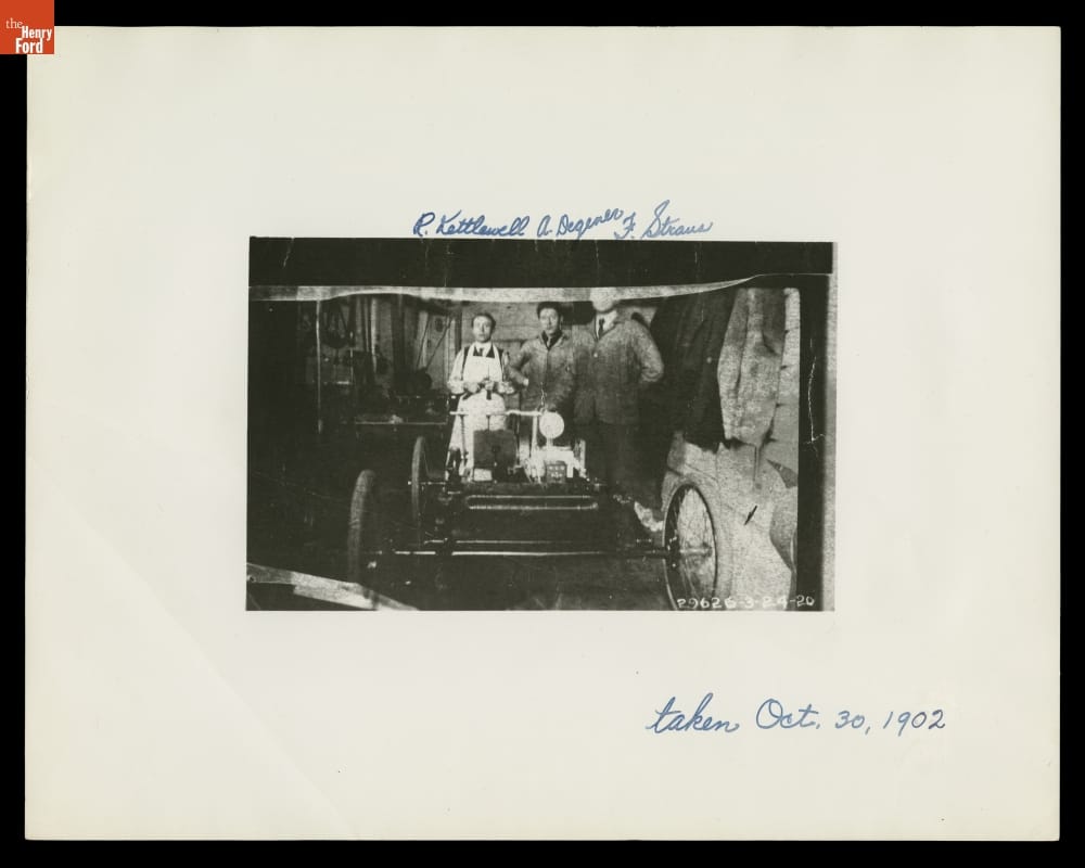 Dick Kettlewell, August Degener, and Frederick Strauss, at Ford & Malcomson Company, October 30, 1902