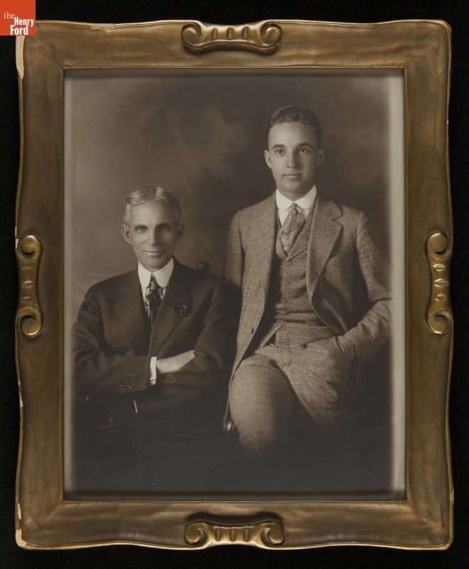 Henry Ford and Edsel Ford posed for this portrait about 1919. That was a momentous year for father and son. Henry stepped down as president of Ford Motor Company, and Edsel succeeded him on January 1, 1919. It was part of the Fords' larger effort to buy out minority stockholders. By July they'd succeeded -- gaining total control of the company.