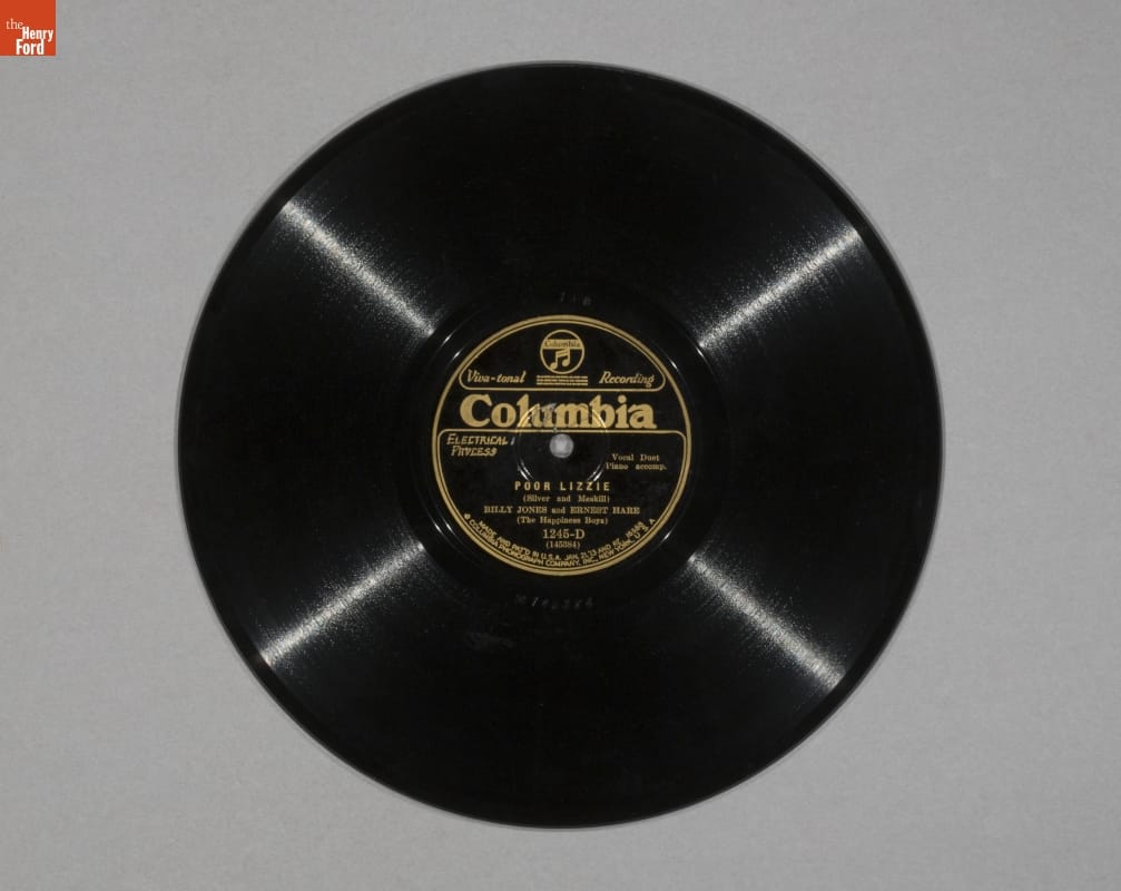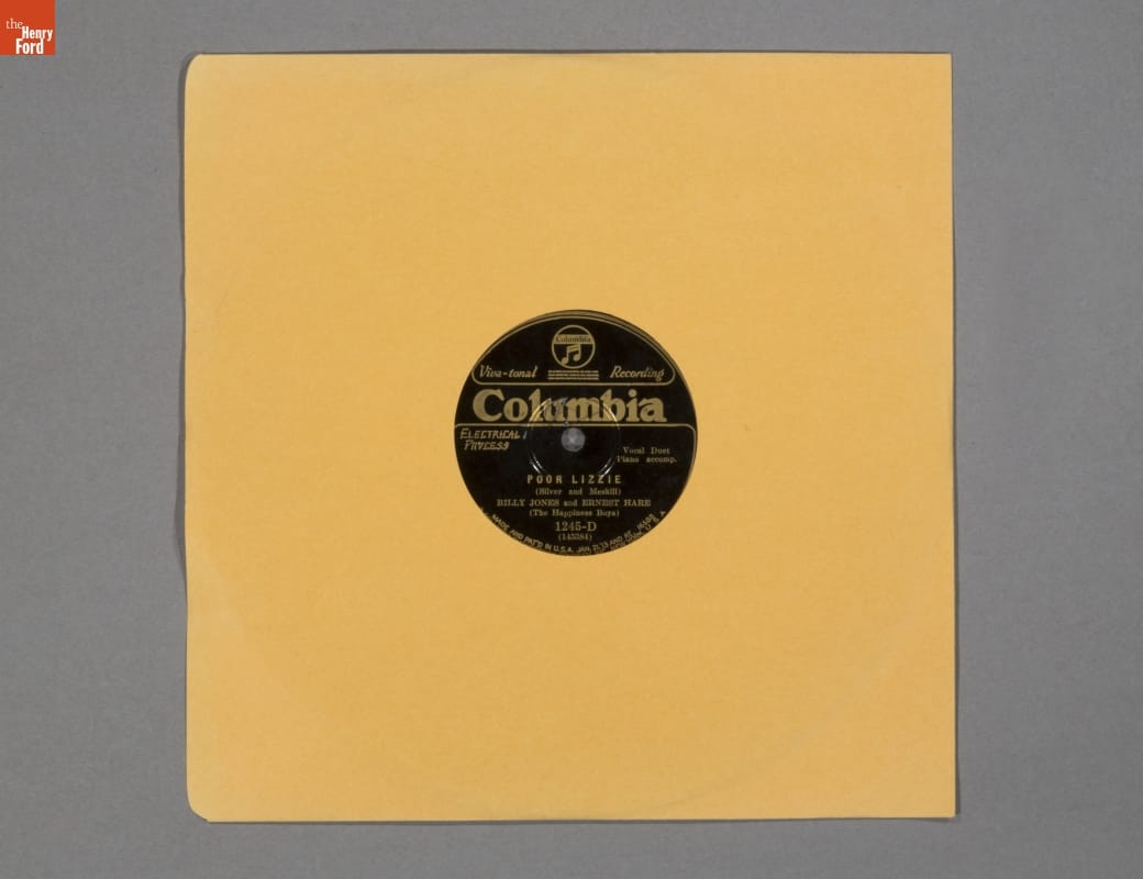 Viva-tonal Recording / Columbia / Electrical Process / Vocal Duet / Piano accomp. / POOR LIZZIE / (Silver and Meskill) / BILLY JONES and ERNEST HARE (The Happiness Boys) / 1245-D (145384) / MADE AND PAT'D IN U. S. A. JAN. 21. '13 AND RE. 16588 / COLUMBIA PHONOGRAPH COMPANY, INC., NEW YORK, U. S. A.
