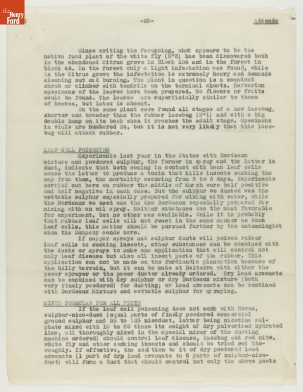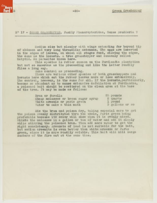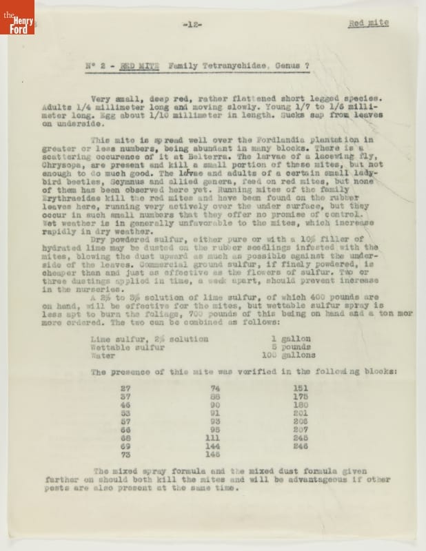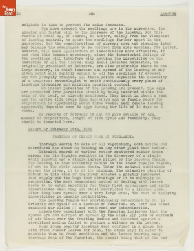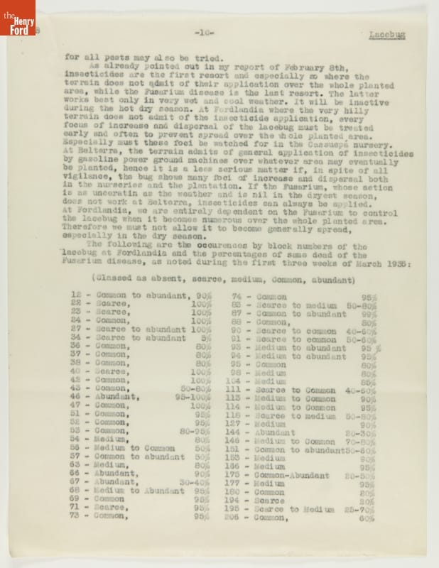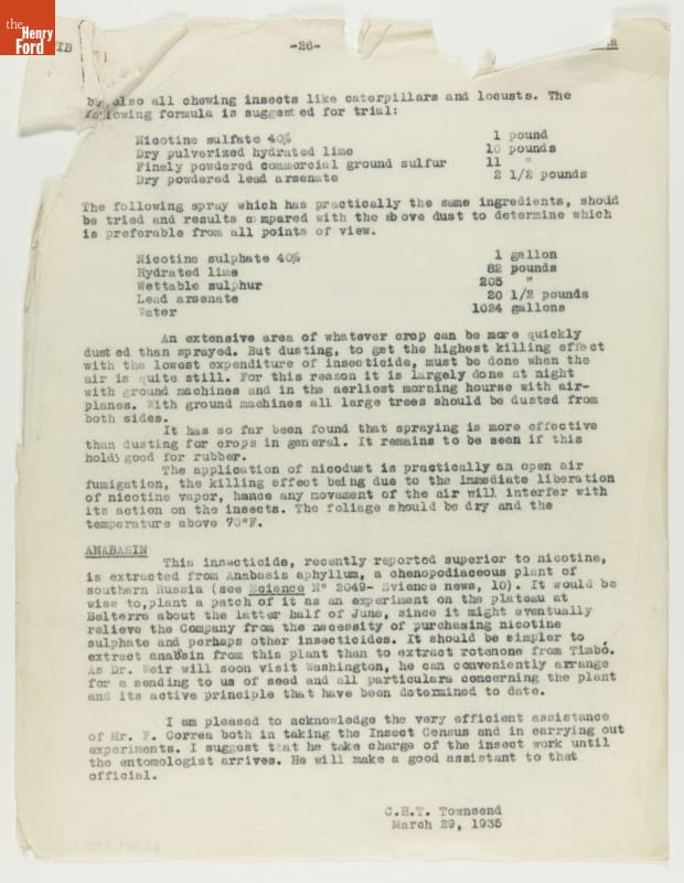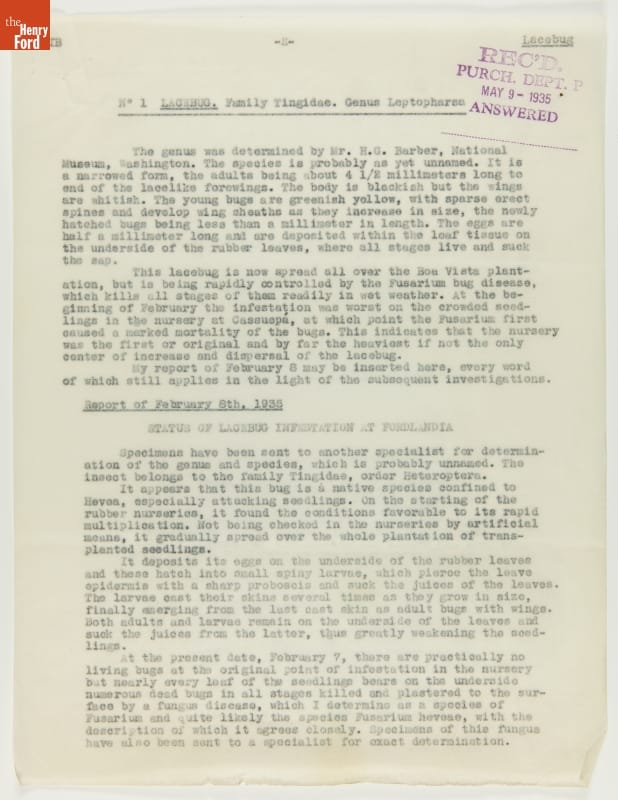 Report, "Insect Census of Fordlandia Including Control Measures," March 29, 1935