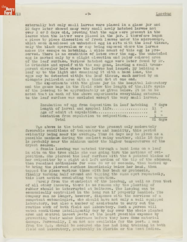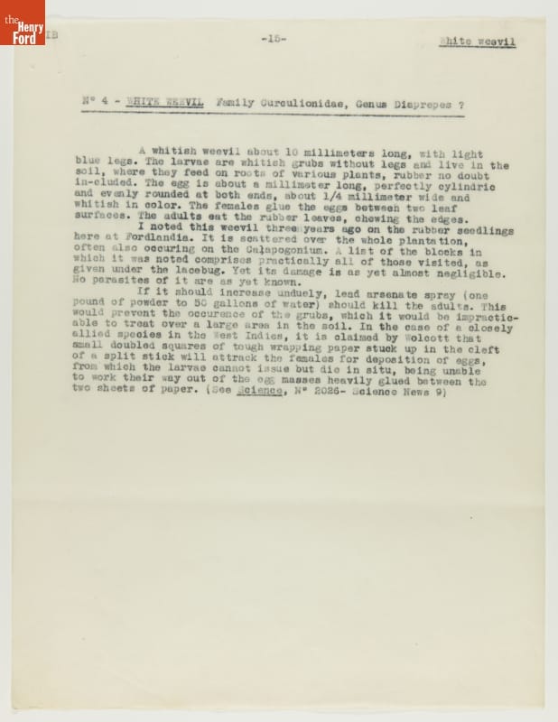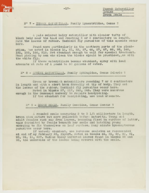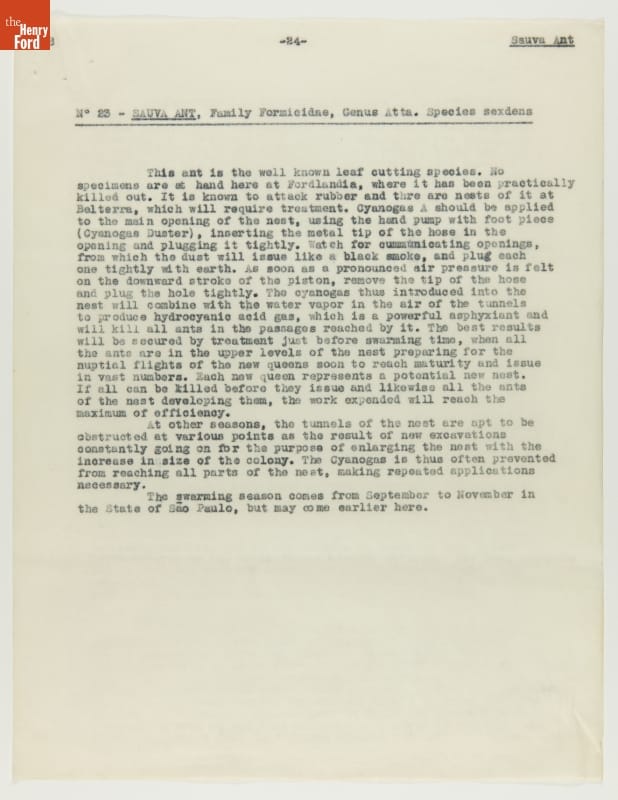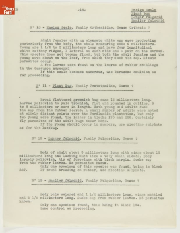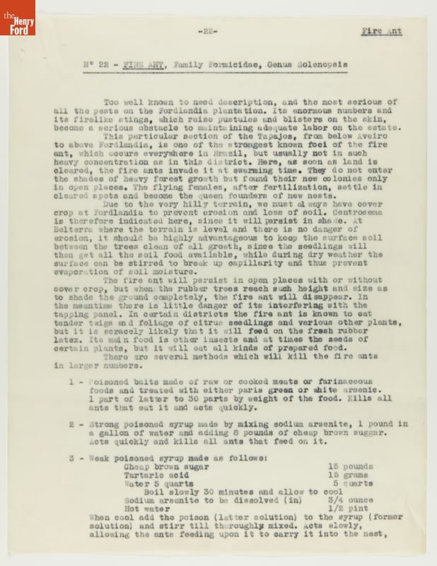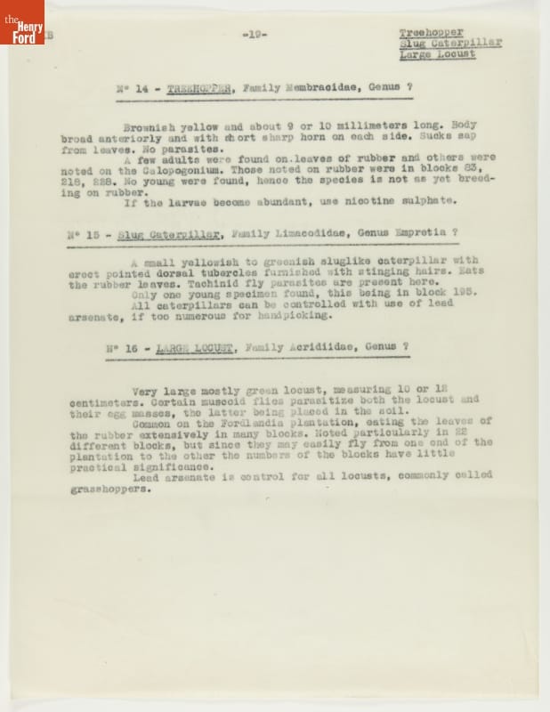 From 1928 to 1945 Henry Ford tried, unsuccessfully, to establish productive rubber plantations at his Brazilian settlements of Fordlandia and Belterra. Set in the Amazon jungle, the plantations of trees were under constant threat from a multitude of tropical pests and diseases. Charles Townsend, an entomologist well-versed in the insects of Brazil, was brought in by Ford to address the pest problem.