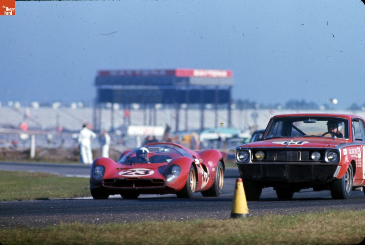 Ferrari 330 and Dodge Dart Race Cars at the Daytona Continental 24 Hours Race, February 1967