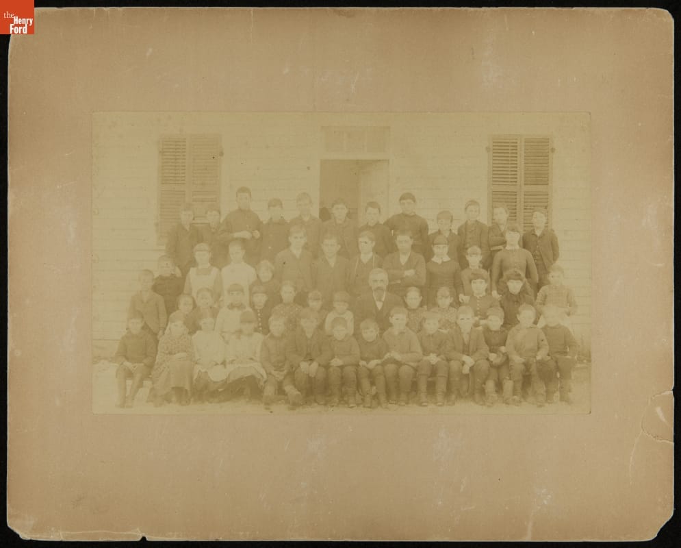 Students and Teachers outside Miller School, Springwells Township, Michigan, circa 1875