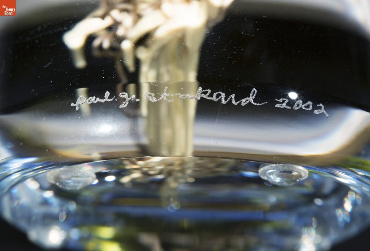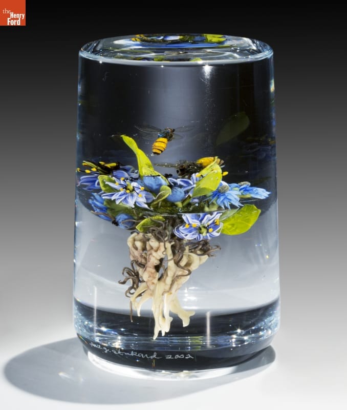 Paul Stankard is one of the founders of the Studio Glass movement of the 1960s and 70s. Most early Studio Glass artists began their careers creating paperweights and moved on to other forms. Stankard concentrated on creating the most technically sophisticated and beautiful paperweights he could imagine. Today, Stankard is acclaimed for his miniature worlds, consisting of imaginary botanicals, bees and sometimes human figures.