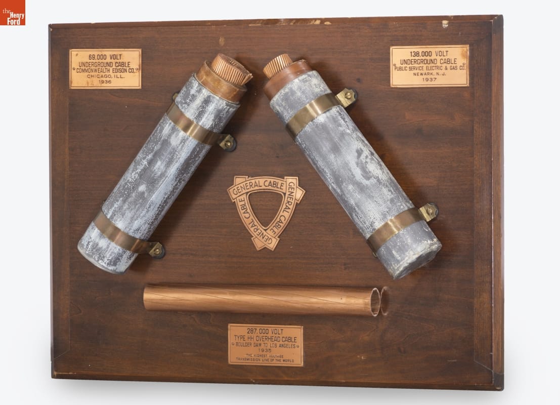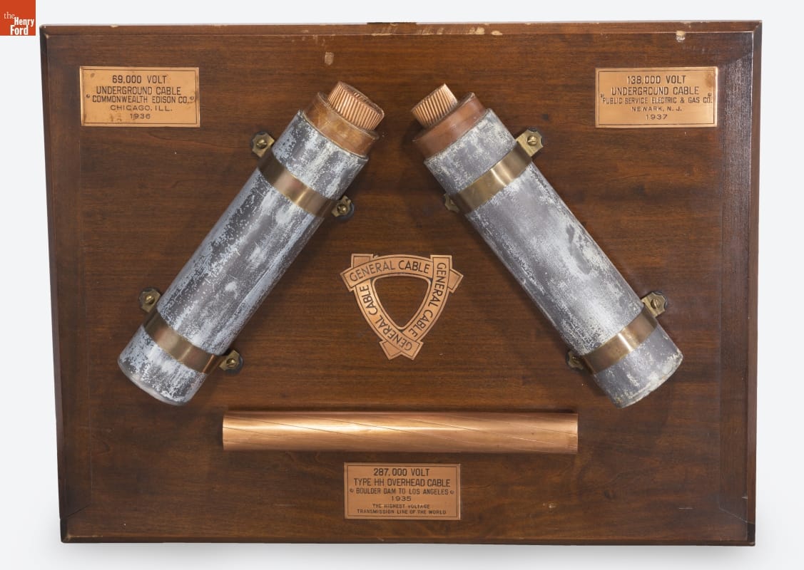 287,000 VOLT TYPE HH OVERHEAD CABLE/ BOULDER DAM TO LOS ANGELES/ 1935/ THE HIGHEST VOLTAGE TRANSMISSION LINE OF THE WORLD