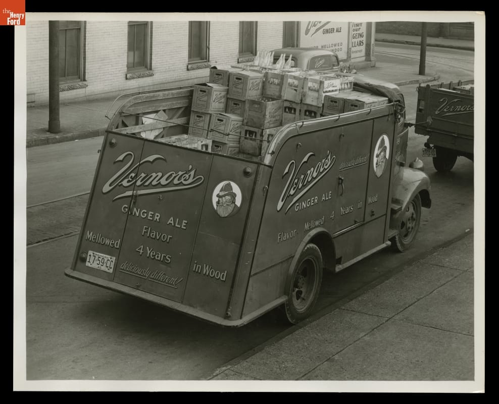 Vernor's Ginger Ale, one of the oldest surviving soft drinks in the United States, was created in Detroit. By the mid-1910s, innovations in bottling technology and the increasing affordability of the automobile allowed the company to begin delivery of the beverage. Vernor's Ginger Ale's first delivery fleet, purchased in 1916, included eight Ford Model T trucks. The company continued to use Ford vehicles for many years.