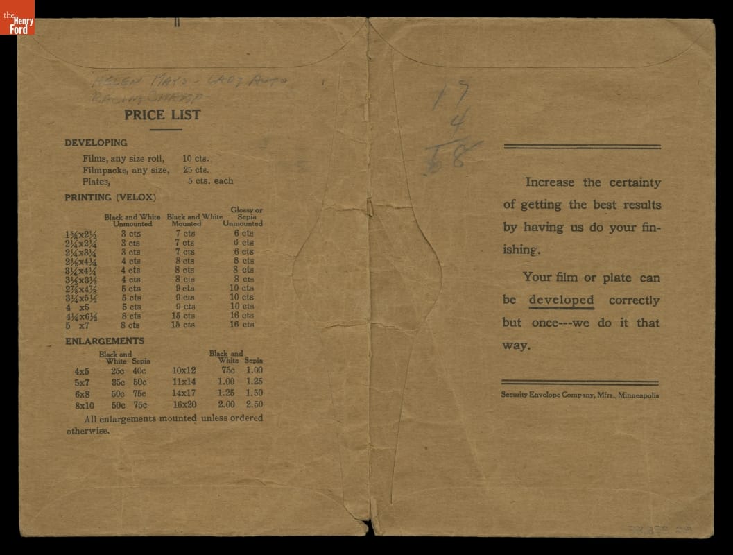 Dayton Camera Shop Photo Envelope, January 23, 1919