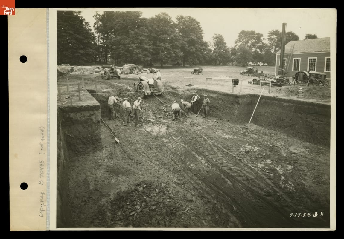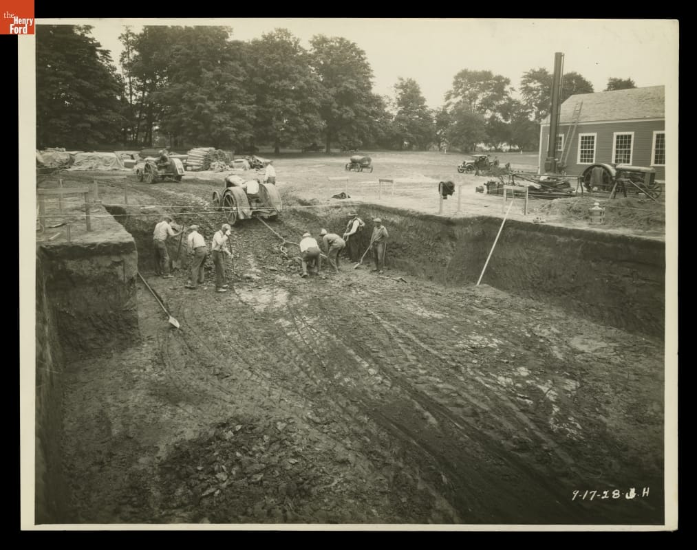Workmen Preparing the Site for Sarah Jordan Boarding House in Greenfield Village, April 17, 1928