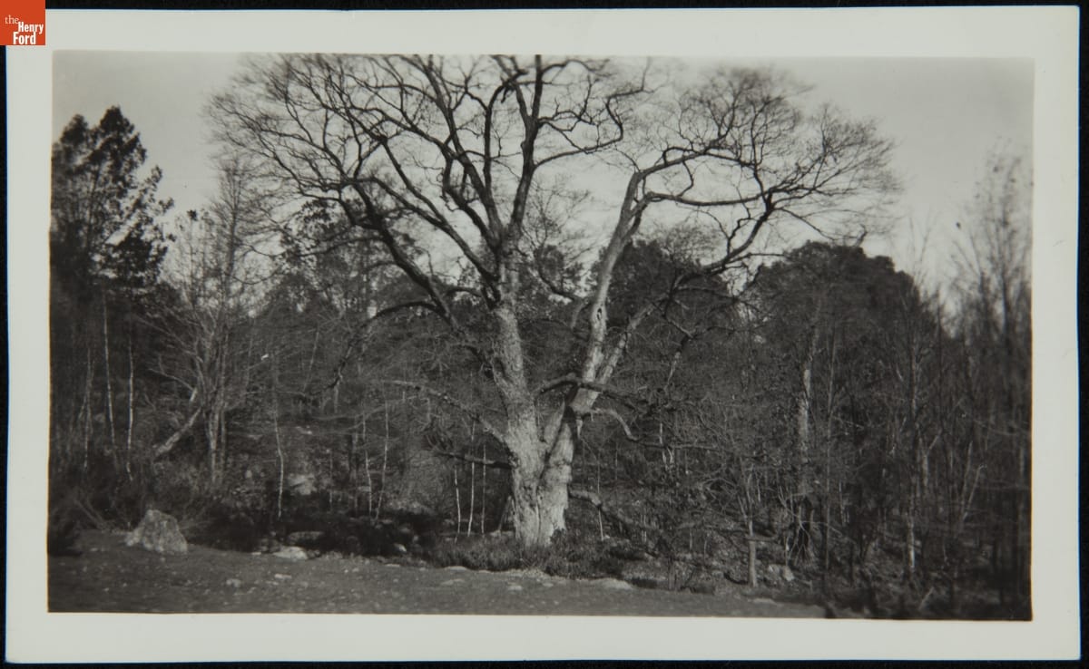 As America was taking its first steps towards industrialization, the Hanks family of Mansfield, Connecticut, made early attempts to mechanize the production of silk thread. In 1810, Rodney Hanks and his nephew Horatio Hanks built America's first water powered silk mill. Henry Ford moved the mill to Greenfield Village in 1932. This photograph shows the landscape from the mill's original site at that time.
