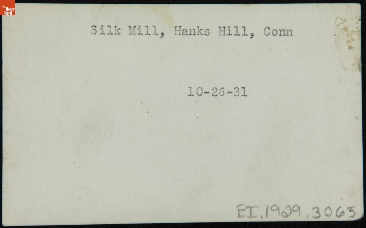 As America was taking its first steps towards industrialization, the Hanks family of Mansfield, Connecticut, made early attempts to mechanize the production of silk thread. In 1810, Rodney Hanks and his nephew Horatio Hanks built America's first water powered silk mill. Henry Ford moved the mill, seen here at its original location, to Greenfield Village in 1932.