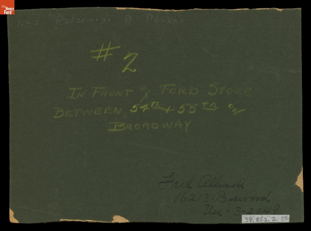 Court-Ordered Automobile Test for the Selden Patent Suit, 1907, "In Front of Ford Store Between 54th and 55th on Broadway"