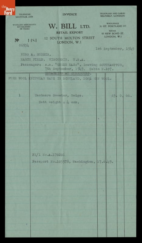 From the Collections of The Henry Ford. From the Estate of Augusta D. Roddis.