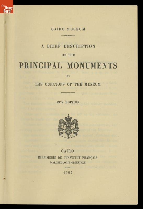 "Cairo Museum, A Brief Description of the Principal Monuments," 1927
